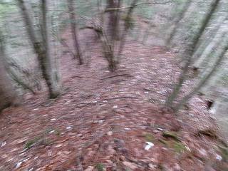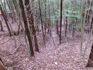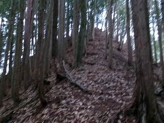 そこから尾根を直登していく。急峻な山なので尾根通しといっても、かなり鋭い斜面である。