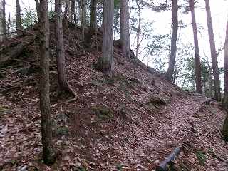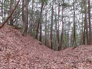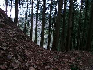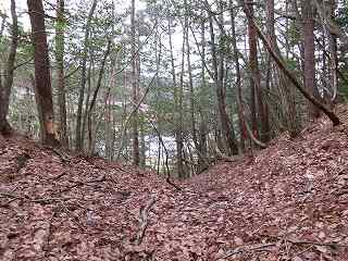 | 堀切 | 城塁が高くそびえて見える |