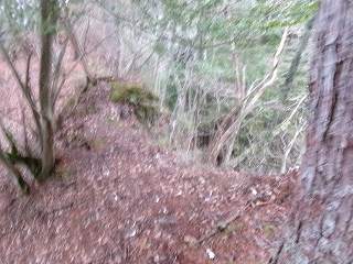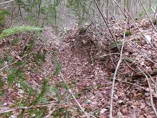 これに従って北側の尾根を進んで行くと、途中に小規模な堀切がある。