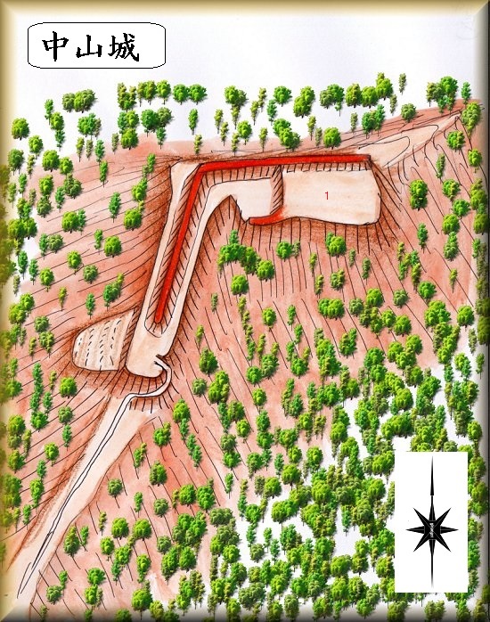 中山城は非常に小規模なものであり北東部分の先端に1郭を置いている以外は、まとまった郭を有していない。