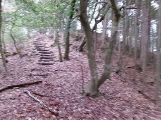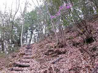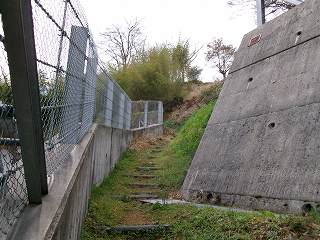 斜面を登って行くと、途中から階段が付けられているのに気が付いた。どうやら、かつて山上を公園化しようとしていたことがあったのであろう。