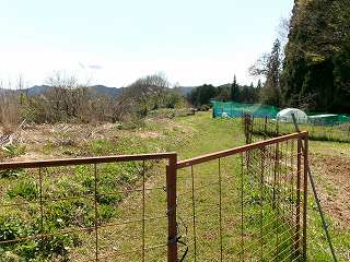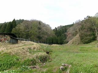 城内は一面の畑となっている。入口には獣除けの柵があるのでこれを開けて内部に入って行く。