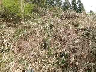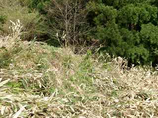 ここから直登していけばすぐに郭内部に到達できそうなのであるが、ヤブがひどくてとても登れそうにない。