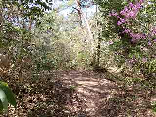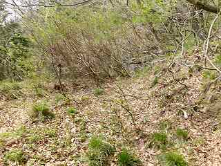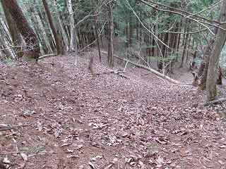 ということで、そこから砦の側面部に取り付いて行く。ここを登ると北側の堀切の所までアクセスできるのである。堀切までの比高は40mほどである。