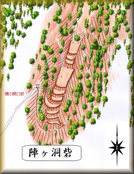 陣ヶ洞砦の場所。 獣除け柵の開口部。