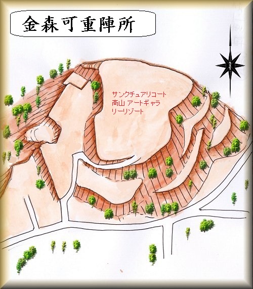 その際に、金森長近自身は鮎崎城を本陣としたが、長近の養子となっていた可重は、この地を本陣として松倉城に対峙したと言われている。