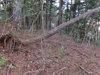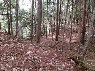 尾根は南東方向に続いている。幅広の尾根でここも郭と言ってもよさそうである。