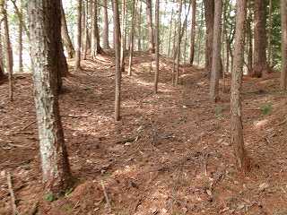 | 黒洞砦から白米城に向かう途中の尾根。ジグザグの通路の痕跡がある。 | 段郭群 |