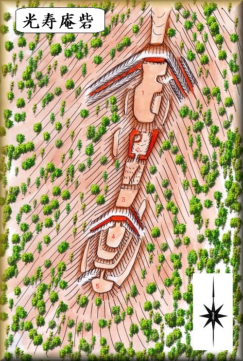 光寿庵砦は、それほど大規模な城郭ではないが、加工はしっかりとしておりメリハリの利いた遺構を残している。今村城郭群の中では計画的にきちんと構築された砦だと言ってよいものである。