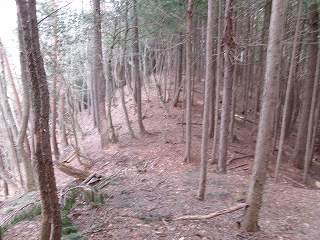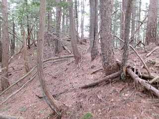 登りの斜面にはジグザグの通路が付けられているのだが、現在では痕跡的になってしまっており、通路のようにジグザグには進んで行きづらくなっている。