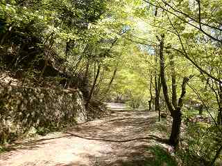 牛追砦の下を通っている今村林道は、南側の光寿庵から、北側の白米城の下までを結ぶもので、ちゃんと舗装された道となっており、あちこちに車がすれ違えるスペースも確保されている。