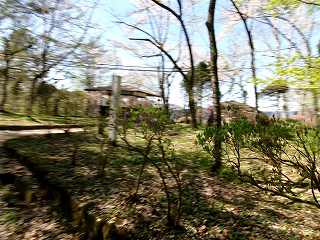 地図を見ると、山頂の金竜ヶ岡まで車道が付けられているようで、そこにトイレなども設置されている。ということで車で登って行けるのではないかと思って試みたのだが、実際には入口は輪留めされていて、公園内は車で走行できないようになっていた。