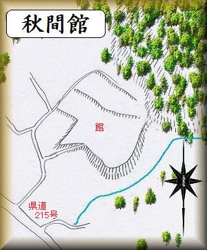 下秋間の八幡神社の南側200mほどの所に秋間館があった。背後に山稜を抱えた傾斜地形を削平して館を営む平場を形成したものである。比較的古い時代の居館としては、よくある地取りと言っていい。