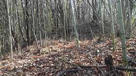 | 4郭から3郭と2郭の城塁を見たところ。 | 4郭にある竪堀だが、ヤブでよく分からない。 |