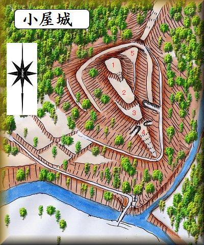 小屋城は、山稜を利用して連郭式に郭を配置した小規模な山城であるが、周囲の切岸は鋭く、なかなかの防御性を発揮したのではないかと想像される。