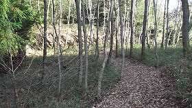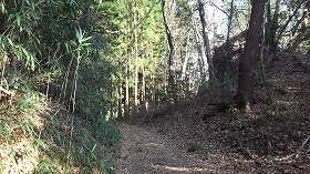 こちらの山道が大手道であったかどうかは分からない。ただし、この道の途中に、竪堀状の窪みが設置されていたことからすると、もともとの登城道の1つであったことは間違いなかろう。