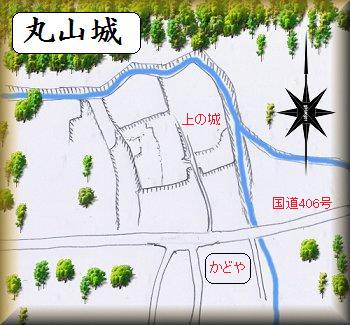 道路のすぐ脇は民家が建て込んでおり、その上はただの微高地であり、城がありそうな場所ではない。といったこともあり、実際の城址がどこにあるのか分かりにくい。地元の人に聞いても「城跡なんかないよ」と言われてしまった。しかし、何人目かに伺った方が「城跡なんて聞いたことがないが、そこの家の屋号がウエンジョだ」と教えてくださった。ウエンジョ→ウエンジョウ→ウエノジョウ、つまり上の城ではないか。ということで、どこが城址なのかがやっとわかったという次第である。となると「丸山城」よりも「上の城」とするのが正式名称としてふさわしいのではないかと思われる。どうして丸山城という名称になっているのかよく分からない。(丸山氏が守っていたからだという説もある。)
