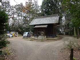 | 1郭の先端部分。一段下にも平場が造成されている。 | 神明社。すぐ脇に民家が建ち、その敷地のような雰囲気になっている。 |