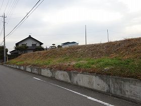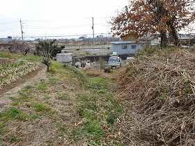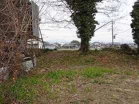 | 北側の堀跡らしき部分。 | 南西側にかろうじて残存する土塁。 |