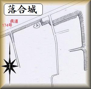 落合城は、鮎川の西側の河岸段丘上にあり、県道174号線と173号線とが合流する地点を抑えるような位置にある。北側の土手はいかにも城館を思わせるものである。