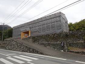 というわけで、地図に掲載されているのはもちろん、近くまで行けば案内表示も出ているので迷うことはない。駐車場は、高山社の南500mほどの所にあり、そこから橋を渡って三名川の対岸を歩き、高山社の手前でまた橋を渡ってくるという遊歩道が付けられているのだが、そこをまどろっこしく歩く余裕はなかったので、高山社の真下にあるトイレの駐車場に停めさせてもらった。