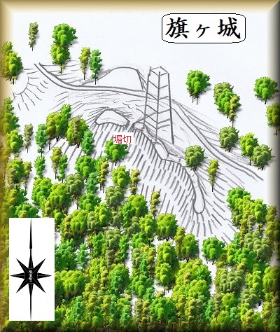 旗ヶ城の歴史についてはよく分からない。しかし「旗」という名称から想像するに、ここに軍旗を掲げていたのではないかと想像される。つまり籠城用の城ではなく、旗を立てて何かの合図をしたり、ここにその旗に関連する勢力がいるということを示すための城だったのではないだろうか。旗を立てるだけであるならば、このような狭隘な城であったとしても、特に不便はなかったことであろう。