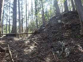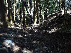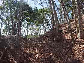 | 3郭の先には折れを伴った土塁がある。 | その先にある堀切。 |