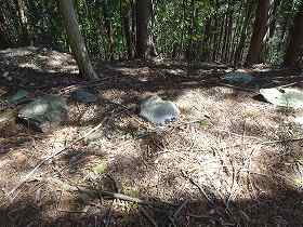 1郭は長軸15mほどで、ごく小さなものである。ここに礎石のような石が何個も配置されていた。ここにはかつて礎石建造物(神社?)が建てられていたのではないかと思われる。