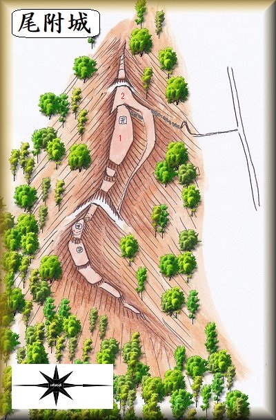 尾附城は、大規模ではないが、コンパクトによくまとまっており要害性も高い。正面から攻め落とすのはなかなか難しそうな山城である。