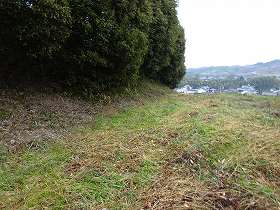 | 西側の城塁。山崎氏の図面では堀となっているが、埋められてしまったのであろうか。 | |