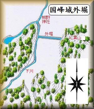 国峰城の外堀は、紅葉山と西側山稜との間、谷戸の入り口付近に設けられていた。