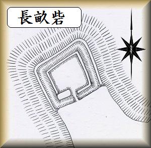 | 北東側から遠望した長畝砦。 | 南の八幡山砦から遠望した長畝砦。櫓台や土塁が残存しているのがはっきり見える。 |
