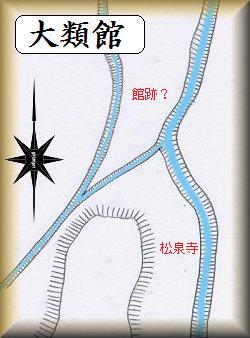 大類館は、麻場城と西側に向かい合う位置、松泉寺の北側下辺りにあった。