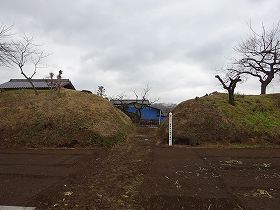 現在見られる土塁が、けっこう凸凹した印象を受けるのは、土塁の一部を崩して堀を埋めたからであるのかもしれない。となると、本来の土塁はさらに巨大なものであった可能性がある。