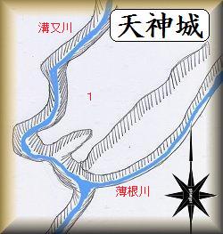 天神城は沼田市秋塚町との境界に近い2本の川の合流点に築かれていた。