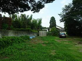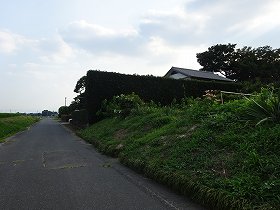 | 市民会館の北側の通路。かつての堀のラインと一致するようだ。 | 南西側の先の民家の裏手に土塁状のものが残っているのだが、遺構かどうかは分からない。 |