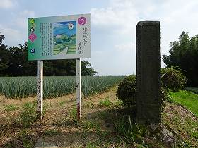 この堀が少しは残っていないかと、周辺を見てみたのだが、現状では明確に堀と思われるものは見当たらない。ただし、土塁状の土手は見られるので、それがかつての城のラインを示している可能性はある。