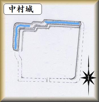 中村城は、中村右馬之丞の居館であったという伝承が残されているが、それについて正確なことは分からない。折れを伴った城塁を巡らせており、戦国期の平城であったと想定することができる。