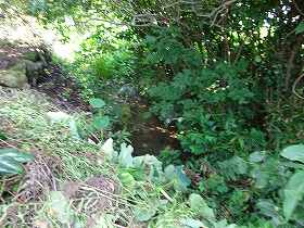 | 北側に水路が残っていたが、これが堀の名残であろうか。 | |