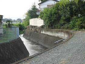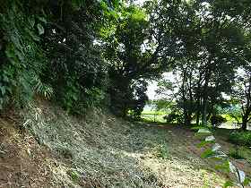 | 東側の川に臨む土手。 | 南西部の堀跡は、このように埋められてしまっているが、かなり幅のある堀であったようだ。 |