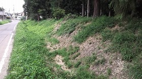 また、北側の県道沿いに大規模な土塁のようなものが見られる。こちらは北側の城域を区画する遺構であった可能性がある。