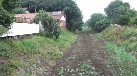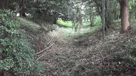 | 東側の堀の土橋から南側部分。幅広の堀で、現在でも形状はしっかり分かる。 | 東側の堀の土橋から北部分。 |
