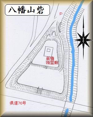 前橋市北消防署のすぐ北側にある南橘精霊廟のある比高10ほどの台地が八幡山砦の跡であるという。