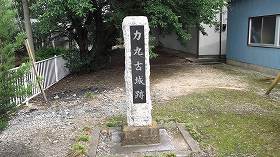 | 本丸跡に建てられた城址碑。しかし、城の面影はほとんど残っていない。 | 本丸周囲にはきれいな水が流れていた。かつての堀の名残なのであろう。豊富な幽邃点があるらしい。 |