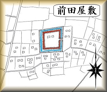 前田屋敷は、亀里町453のお宅辺りにあった。宅地化が進んでおり、遺構は消滅してしまったようだ。また、民家の敷地内であるので、内部探索もできない状態である。