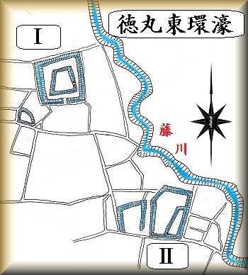 徳丸東環濠は、運輸センターの建ち並ぶ場所に東側で、藤川に臨む場所あたりにあった。藤川の南西側辺りである。現在の藤川は改修されて直線的になっているが、この頃の藤川はかなり蛇行していた。