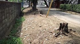 | 本郷C館北側に残る堀の跡。 | 本郷F1館西側の堀跡。 |