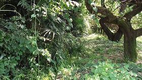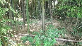 | 館跡付近の竹やぶの中。遺構がありそうな雰囲気だったのだが、よく分からなかった。 | |