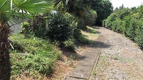 北側はヤブになっているが、きちんと残っていると思われる(奥まで確認はしていないが)。堀と土塁は東側の端で、南側に折り返していおり、このすぐの辺りで消滅してしまっているようである。この南側は民家となって失われてしまっている。