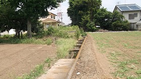 現在、屋敷跡の北西側の角を廻るようにして水路が通っている。とてもきれいな水の水路で、これがかつての堀のラインの一角を成していたのではないかと思われるのだが、堀の面する部分に城塁状の地形を見ることはできなかった。